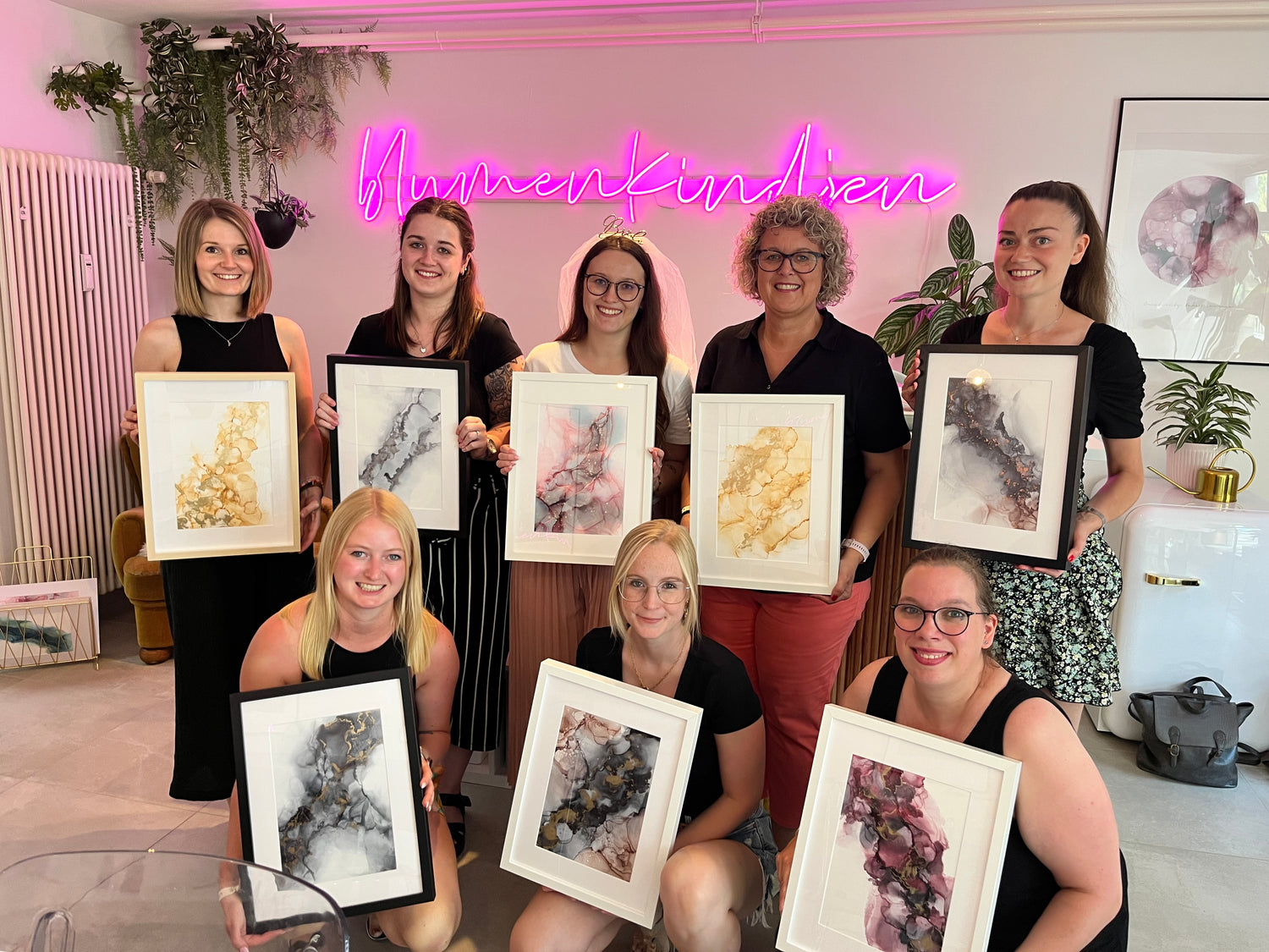 Ein JGA in Koblenz, der begeistert: Beim Alcohol Ink Workshop könnt ihr euch kreativ austoben und gemeinsam Kunstwerke schaffen, die euch für immer an diesen besonderen Tag erinnern.