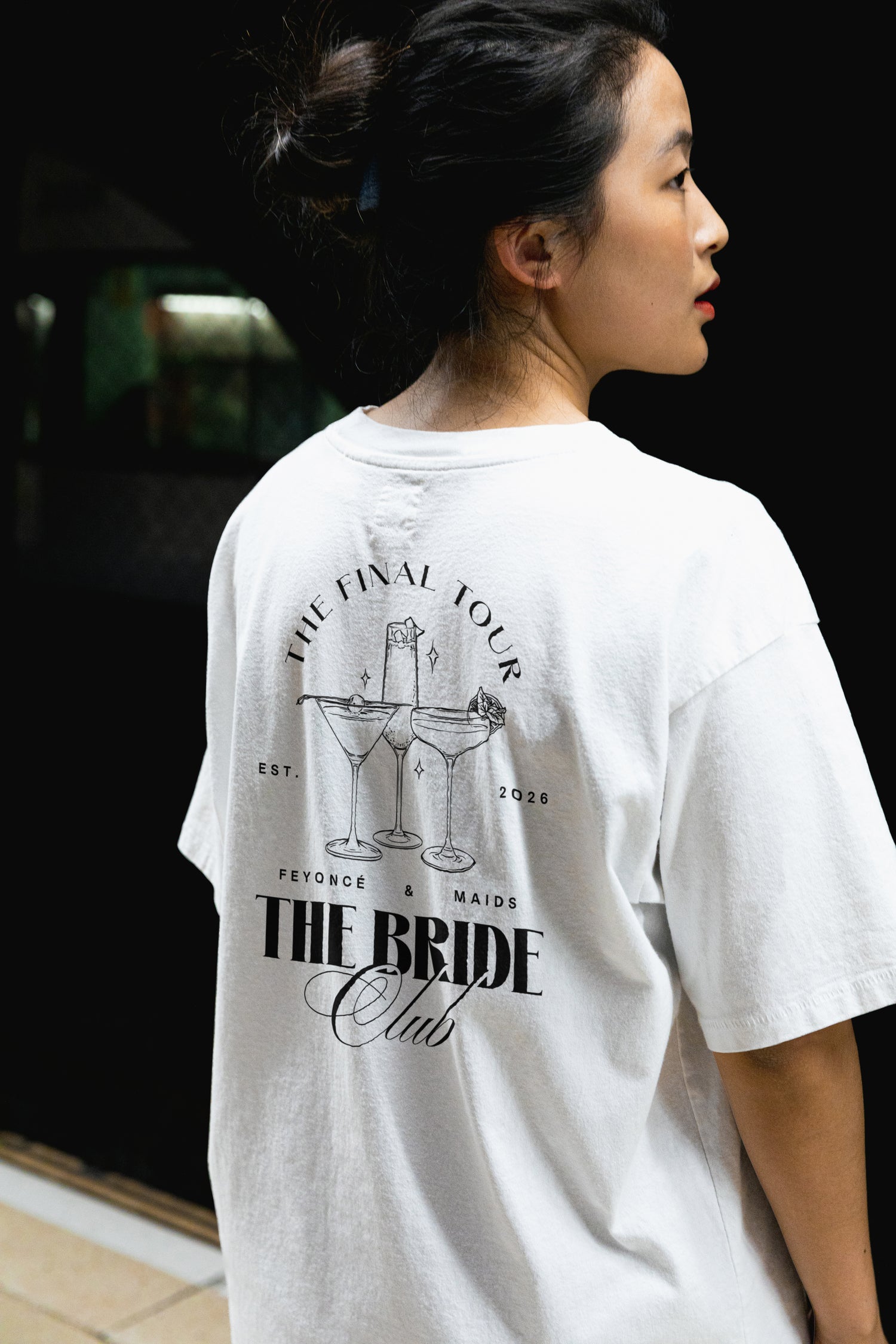 Kurz, cool und ein echter Hingucker: Das The Bride Club Crop Shirt bringt den Club-Spirit in deinen Junggesellinnenabschied. Der Boxy Crop Fit unterstreicht deine Partylaune und setzt ein klares Braut-Statement.